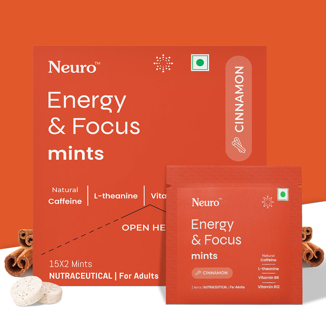 Neuro Energy Caffeine Mints - Cinnamon- Pack of 6 (180 Pieces: 15 X 2 mint sachets)